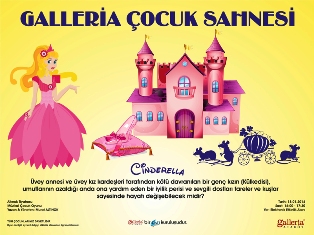 Her haftasonu çocuklara keyifli saatler sunan Galleria Çocuk Sahnesi, küçük misafirleri 18 Ocak Cumartesi günü iyi ile kötünün savaşında, "iyinin" zaferini anlatan''Cinderella” müzikalini izlemeye davet ediyor.